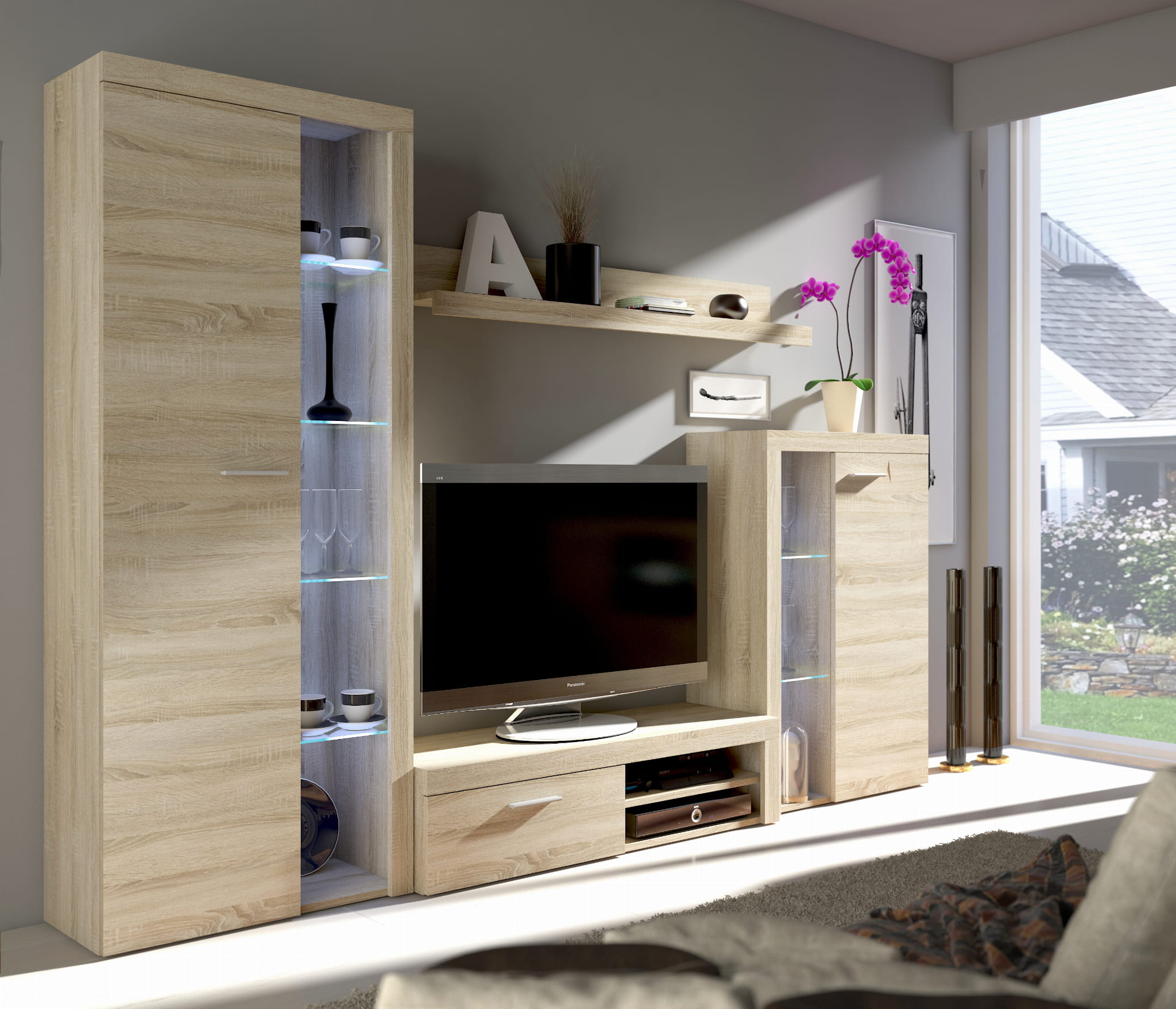 System składa się z 4 oddzielnych elementów, które można dowolnie zestawiać, tworząc własne, dopasowane do wnętrza aranżacje. Znakomicie odnajdzie się w salonie, pokoju dziennym, biurze czy gabinecie.
