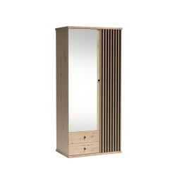 Jeśli szukacie Państwo nowoczesnej szafy łączącej funkcjonalność wraz z unikatowym, nieco loftowym wyglądem to mamy coś właśnie dla Was. Harmonia i balans osiągnięte zostały poprzez zestawienie naturalnego odcienia Artisan wraz z czarnymi dodatkami oraz wstawką lameli. Duże lustro umieszczone na froncie optycznie powiększa przestrzeń. Wszystkie bryły z kolekcji Cali łączy najwyższa jakość materiałów oraz solidność wykonania.